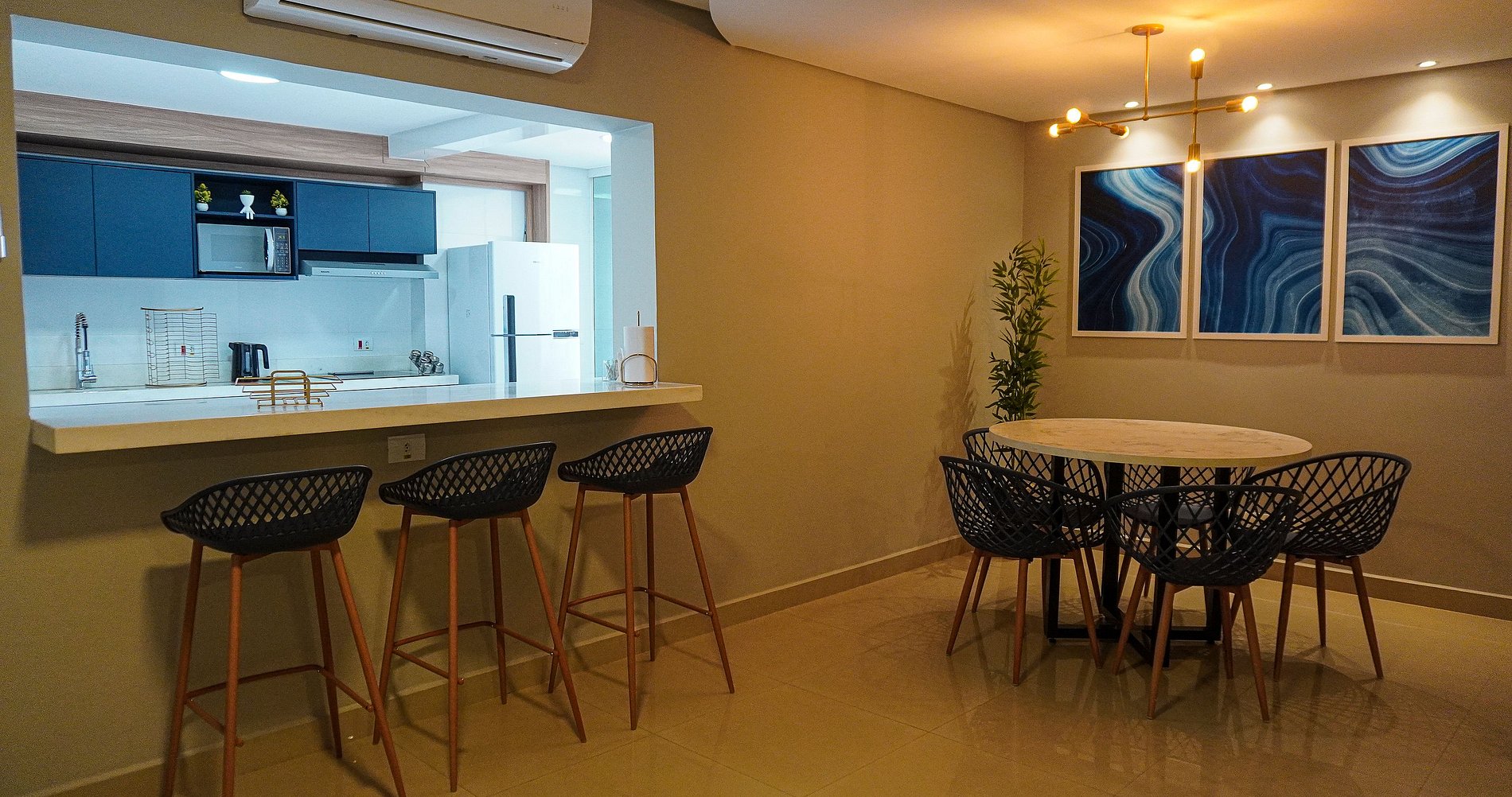 Apartamentos modernos de 120 m² para até 10 pessoas, no centro de Foz do Iguaçu. Conforto, tecnologia e recepção 24h. Cozinha completa, churrasqueira privativa, ar-condicionado em todos os ambientes e estacionamento gratuito para 2 veículos (com reserva). O condomínio oferece lazer completo: piscina, jacuzzi aquecida, sauna, academia, brinquedoteca, sala de jogos, coworking, salão de beleza e mercado 24h.
