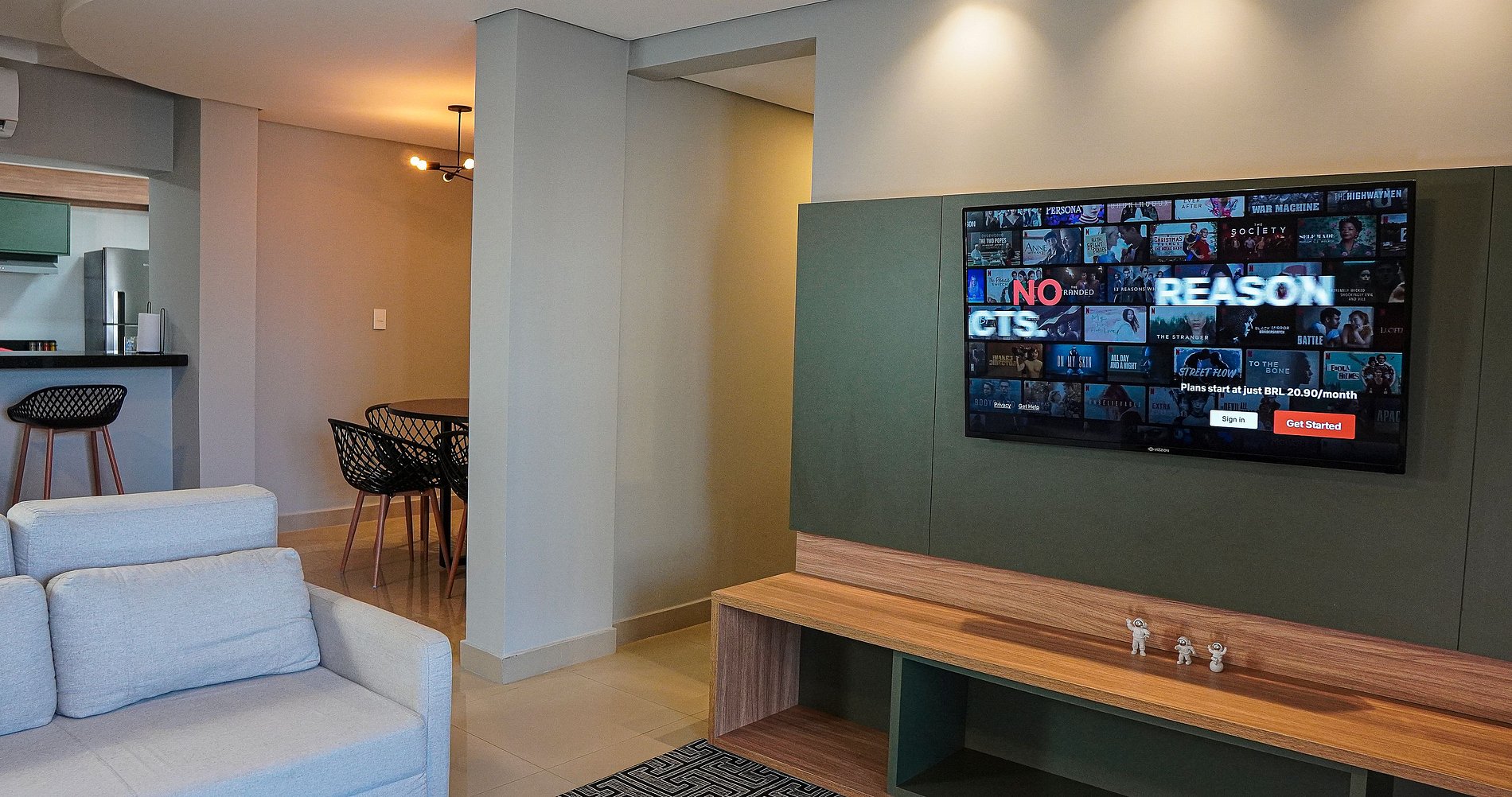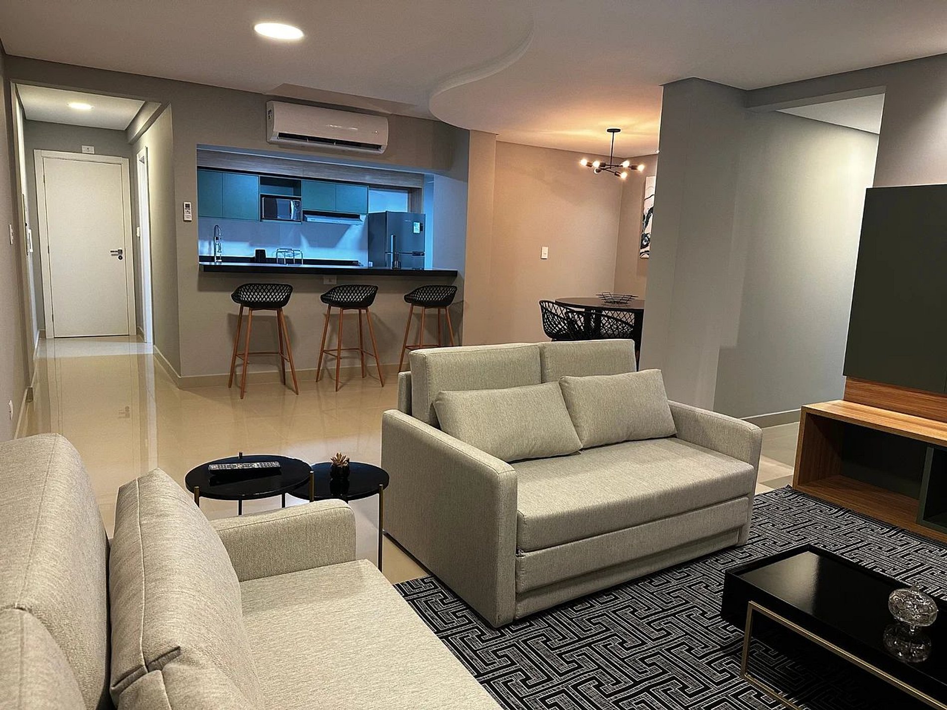 Apartamentos completos. Área de lazer compartilhada disponível durante o dia, com piscina, jacuzzi, sauna, academia, brinquedoteca, salão de beleza, sala de jogos. Recepção 24h sempre disponível para auxiliar no que precisar. Além disso, mercado de uso exclusivo de hóspedes 24h.