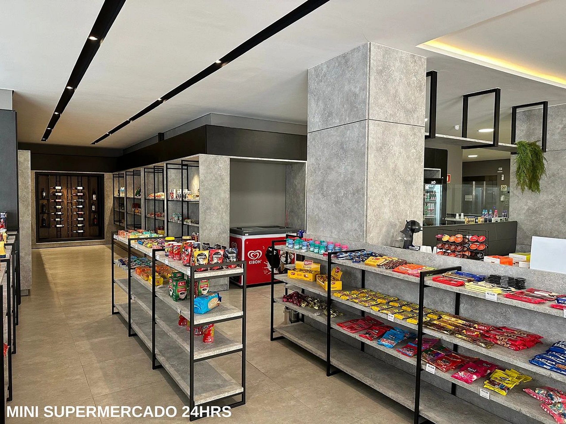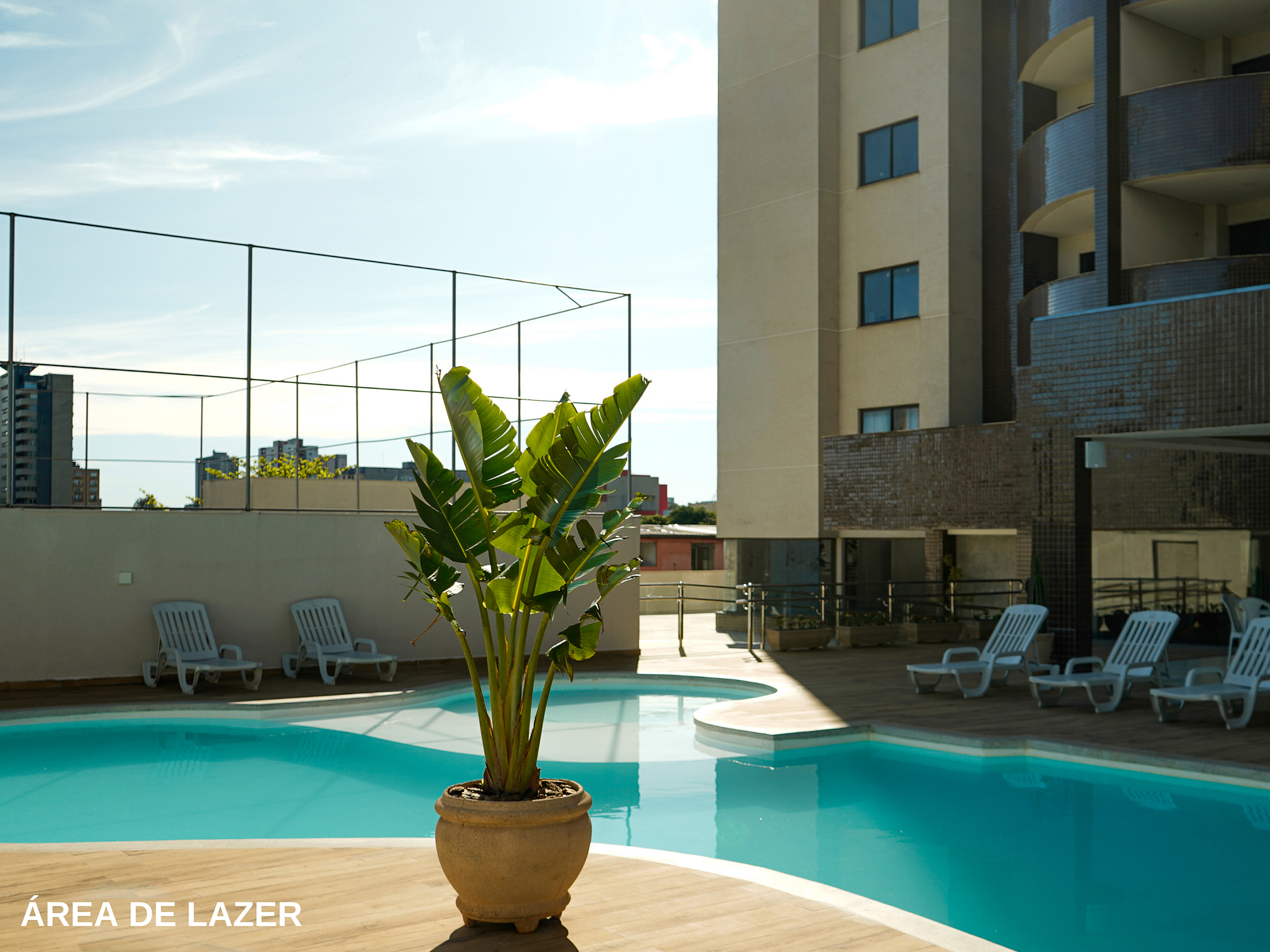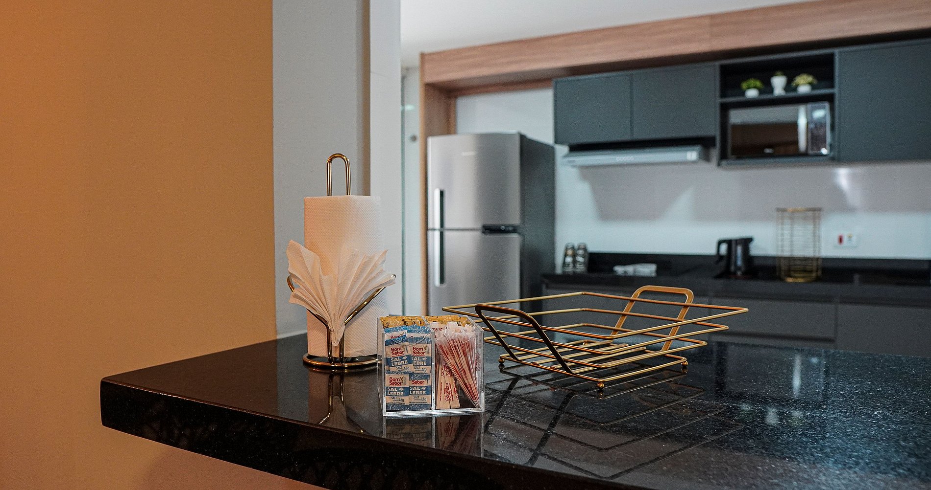 Apartamentos completos. Área de lazer compartilhada disponível durante o dia, com piscina, jacuzzi, sauna, academia, brinquedoteca, salão de beleza, sala de jogos. Recepção 24h sempre disponível para auxiliar no que precisar. Além disso, mercado de uso exclusivo de hóspedes 24h.
