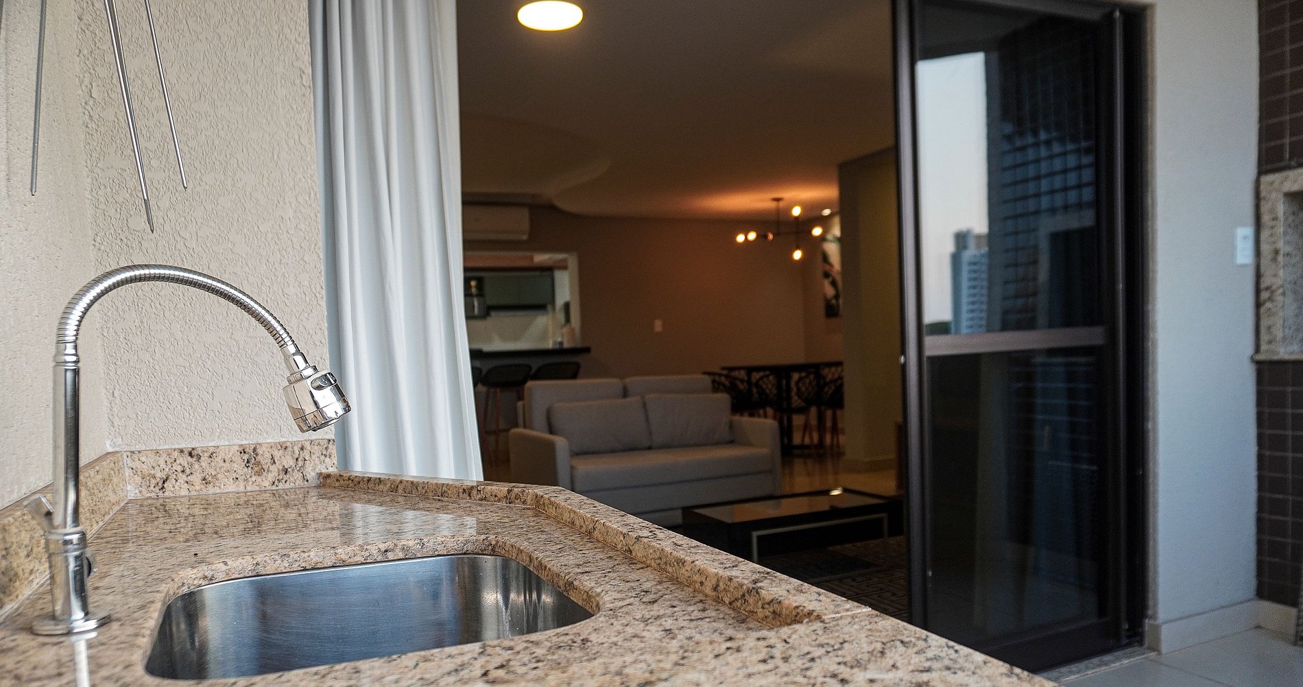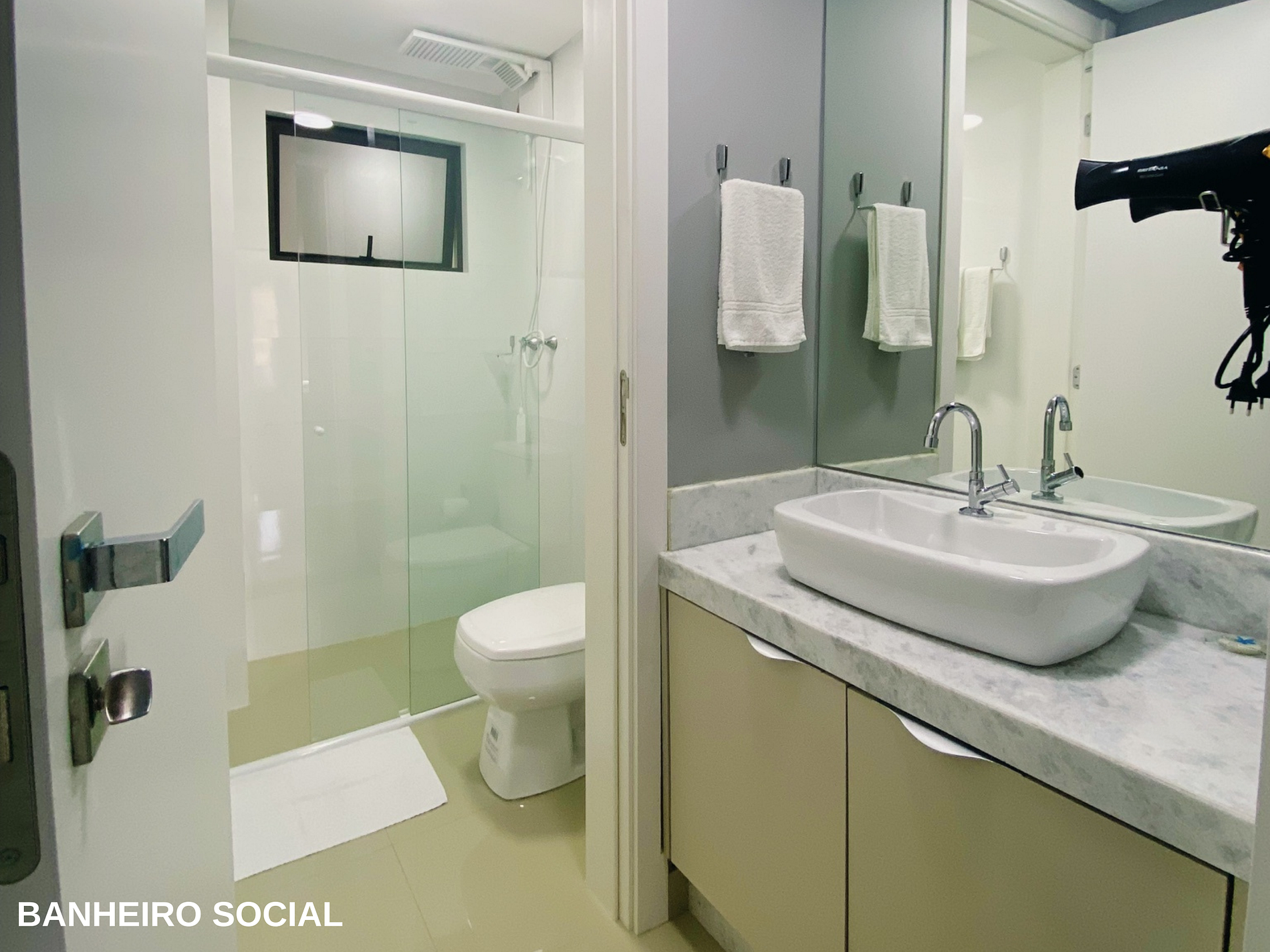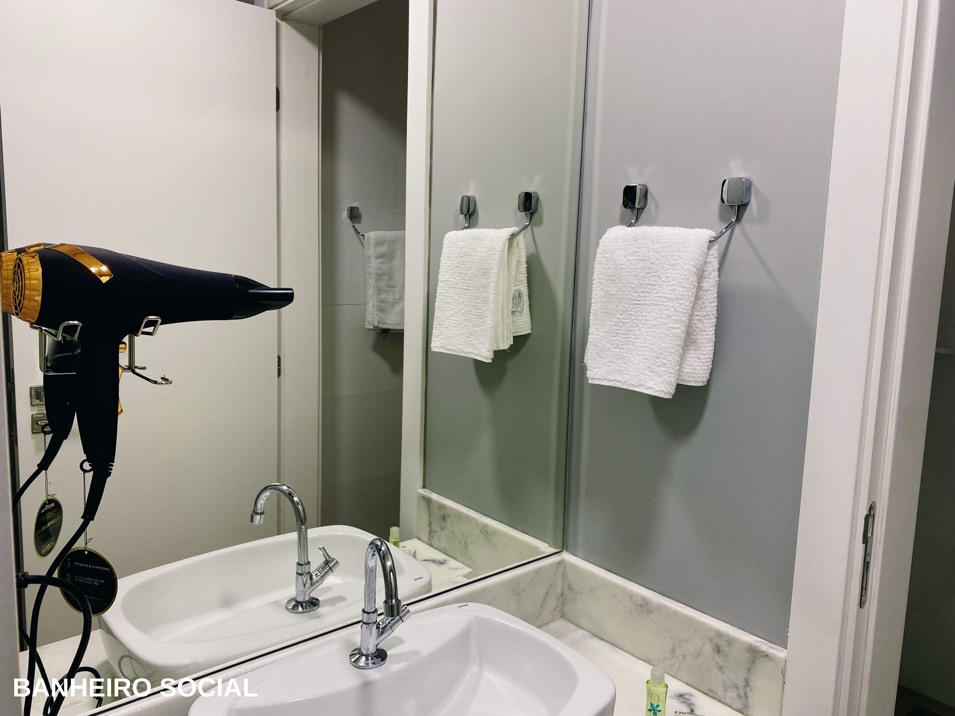 Apartamentos completos. Área de lazer compartilhada disponível durante o dia, com piscina, jacuzzi, sauna, academia, brinquedoteca, salão de beleza, sala de jogos. Recepção 24h sempre disponível para auxiliar no que precisar. Além disso, mercado de uso exclusivo de hóspedes 24h.